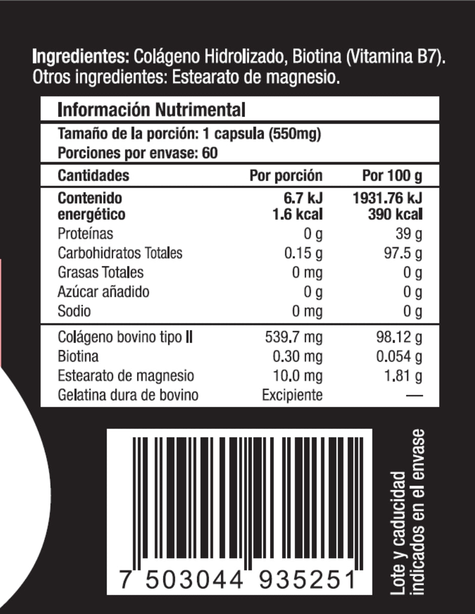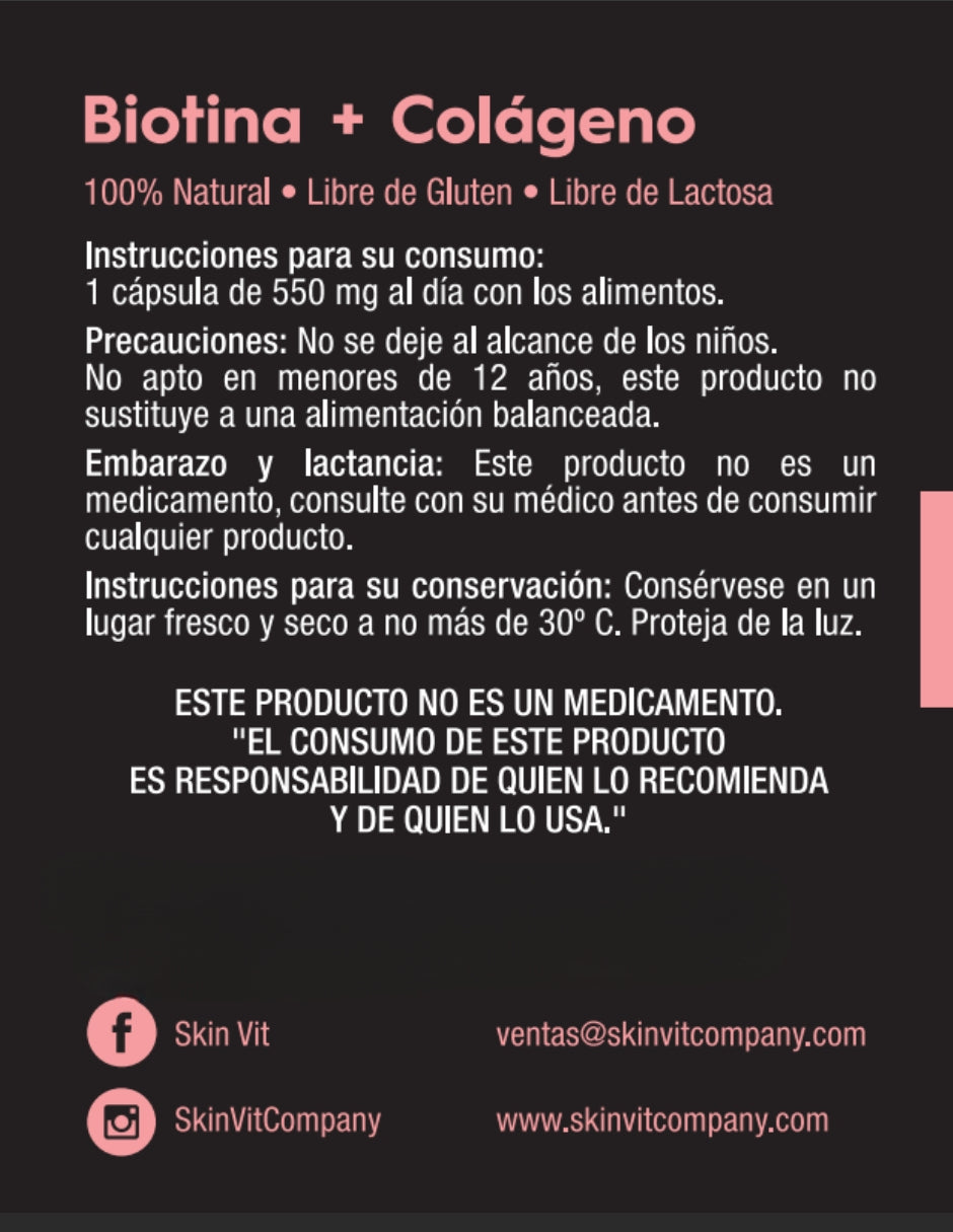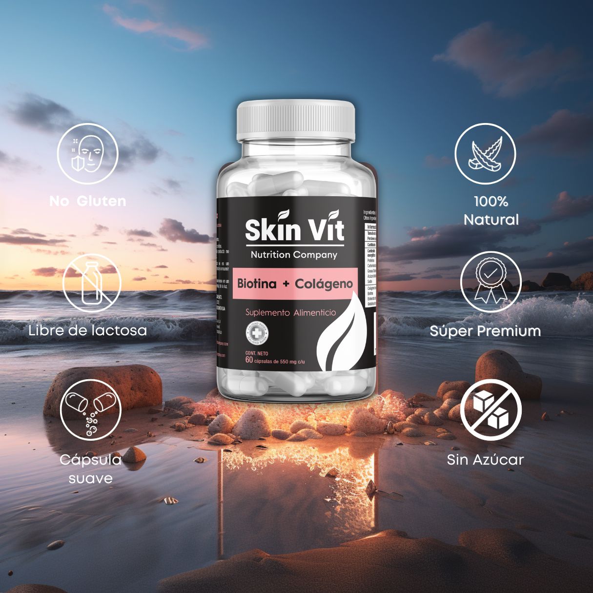Skin Vit Nutrition Company - Super Premium Health presenta Biotina + Colágeno en un formato de 60 Cápsulas.
