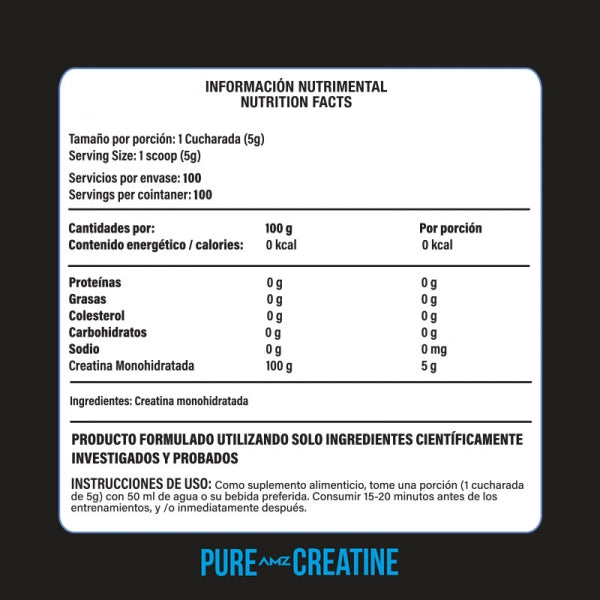 Creatina Monohidratada AMZ 500 G Pure Creatine Natural
