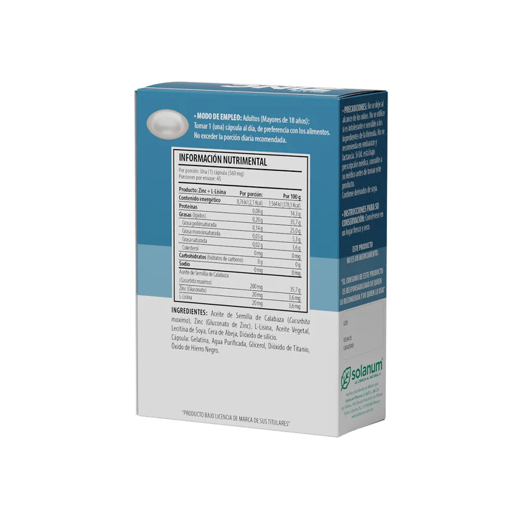 Gluconato De Zinc Y Lisina Solanum 45 Cápsulas