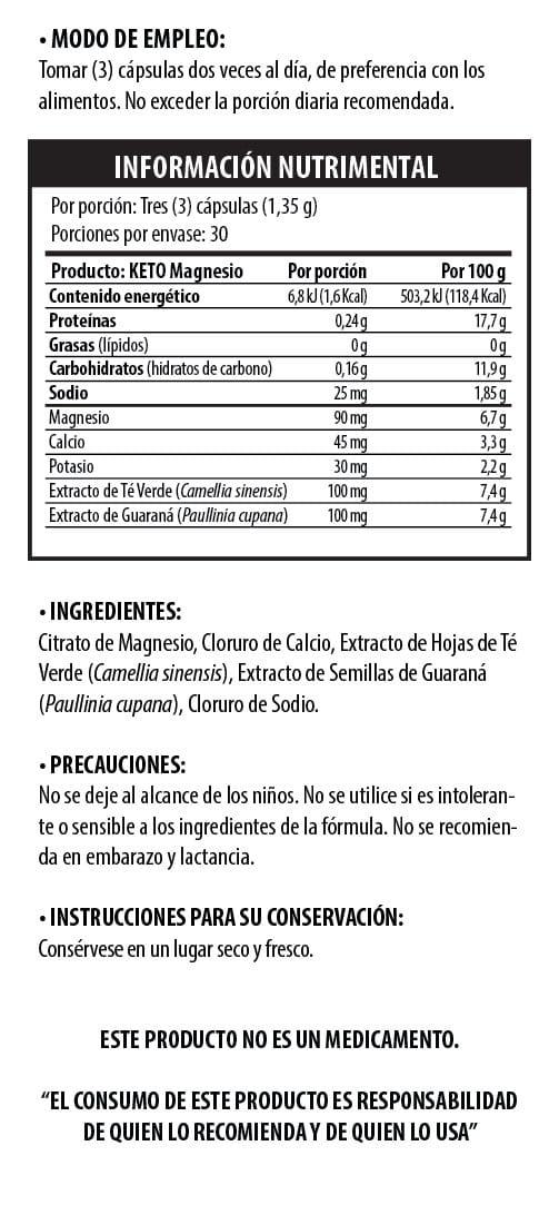 Citrato de Magnesio, Cloruro de Calcio, Extracto de Hojas de Té Verde (Camellia sinensis), Extracto de Semillas de Guaraná (Paullinia cupana), Cloruro de Sodio.
