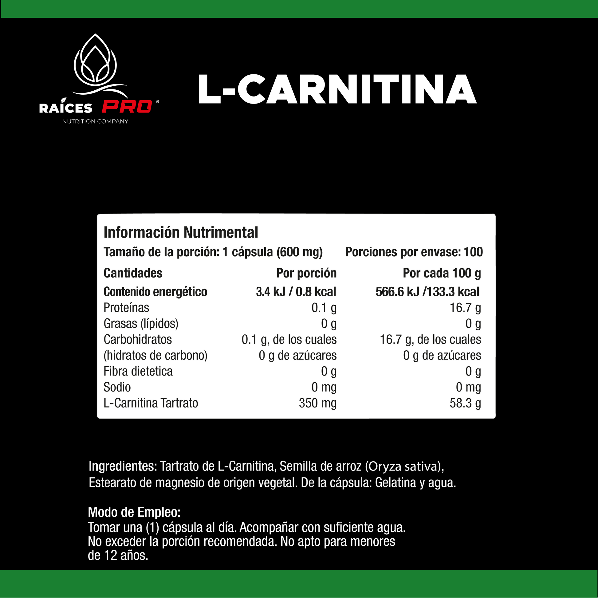 L Carnitina Super Premium 100 Cápsulas Raíces Pro