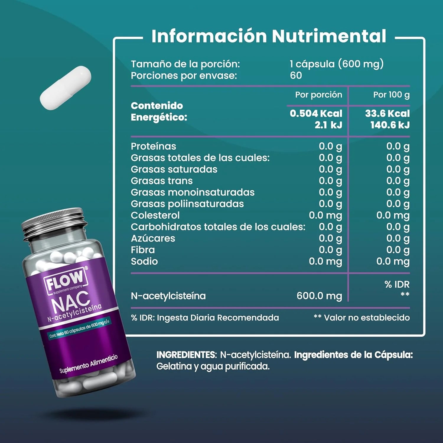 Nac N-acetylcisteína 60 Cápsulas De 600 Mg Flow