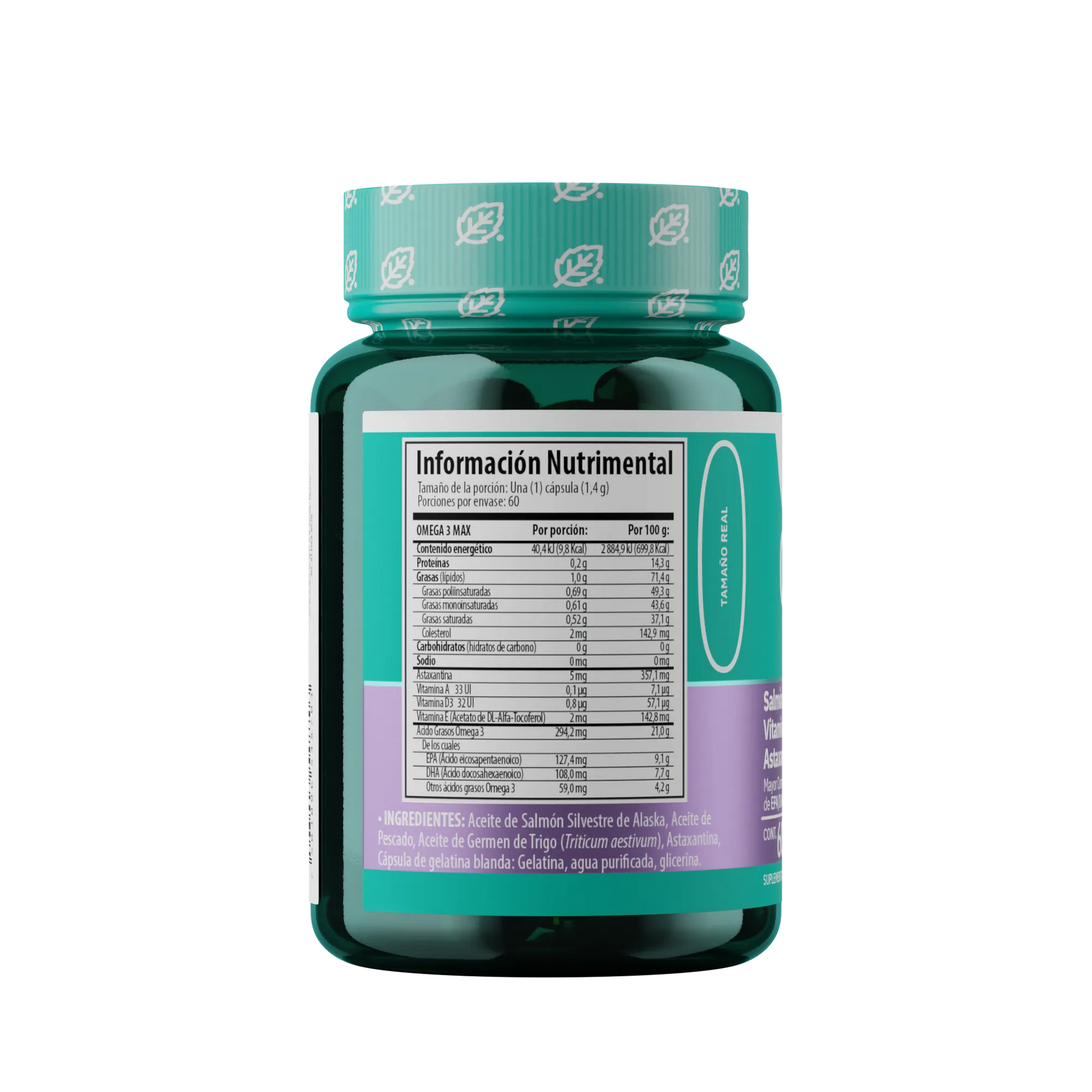 Omega 3 Max Matraz de Alaska contiene una concentración de Omega 3, Salmón de Alaska y Vitamina E. Esta mezcla exclusiva puede contribuir con el apoyo para la salud del corazón, el desarrollo del cerebro, los sistemas inmune y cardiovascular. Además, el Omega 3 se conoce por ayudar a aumentar la densidad ósea y a proteger los ojos. ¡Pruébalo!
