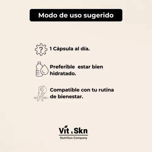 Este suplemento alimenticio de Skin Vit se caracteriza por contar con ingredientes importados de la más alta calidad. Su envasado se realiza en México, cumpliendo con los más altos estándares y la normativa sanitaria del país.