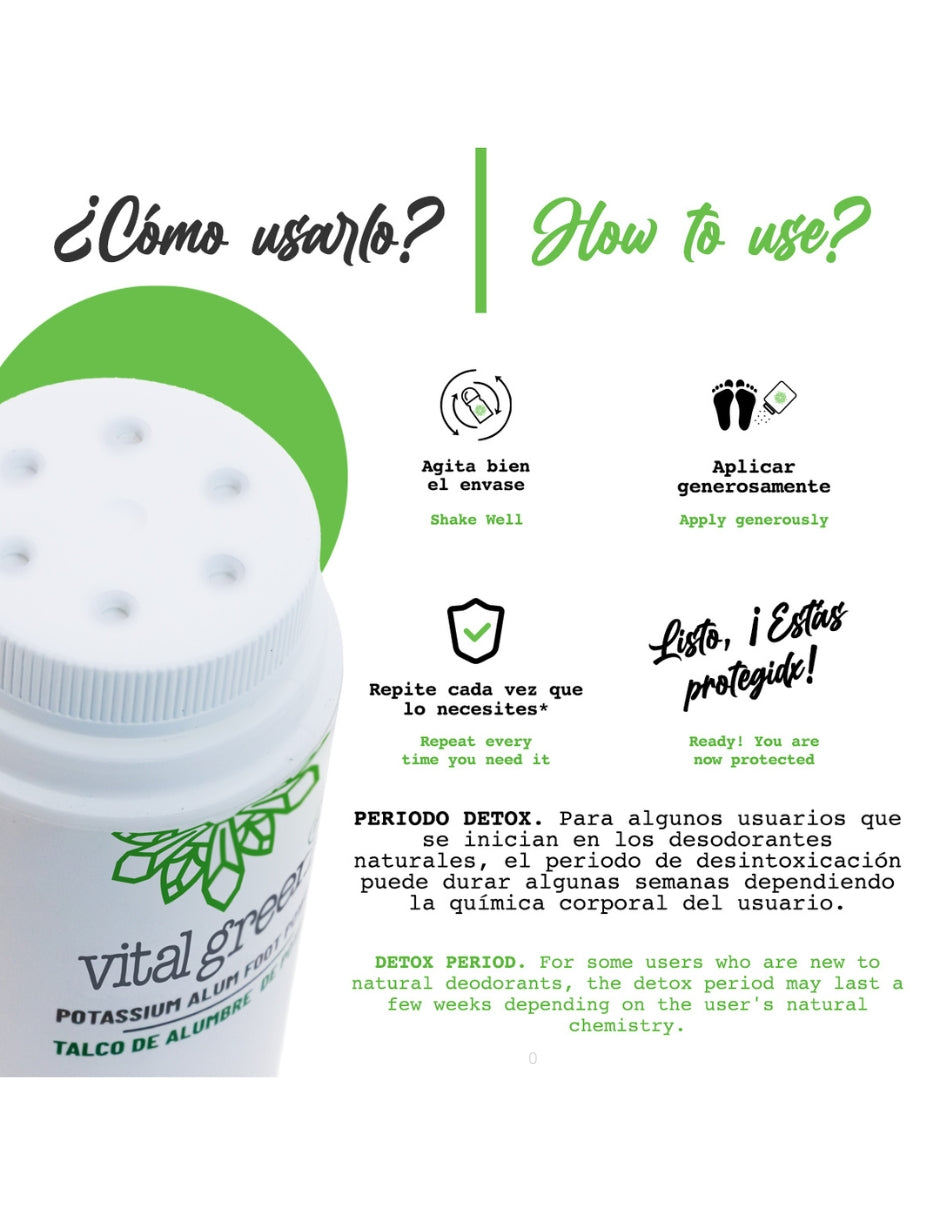 - La piedra de alumbre, que es el ingrediente principal del talco, es un mineral que se utiliza como desodorante natural, ya que tiene propiedades astringentes y antibacterianas. El talco de alumbre se utiliza para tratar una variedad de problemas de la piel, como el acné, los cortes, las aftas, el ardor de la piel después de la depilación, y las estrías. También se utiliza para eliminar el pie de atleta, ya que ayuda a eliminar malos olores, irritación y comezón