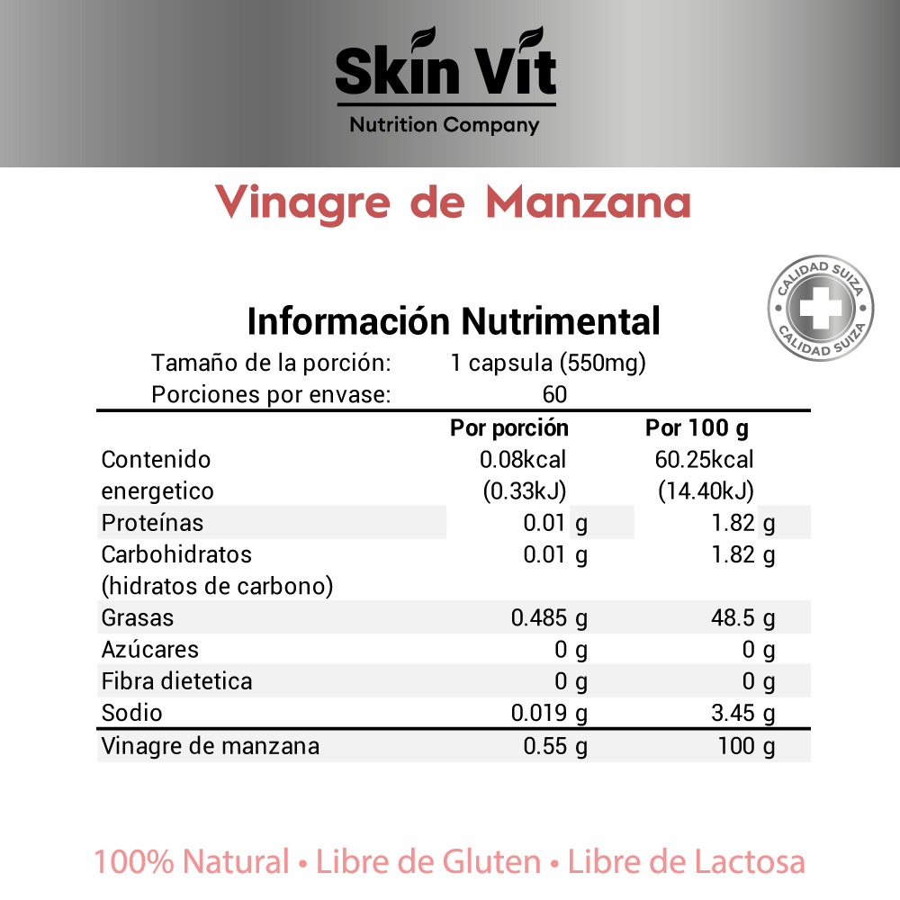 Skin Vit Nutrition Company - Super Premium Health presenta Vinagre de Manzana en un formato de 60 Cápsulas.