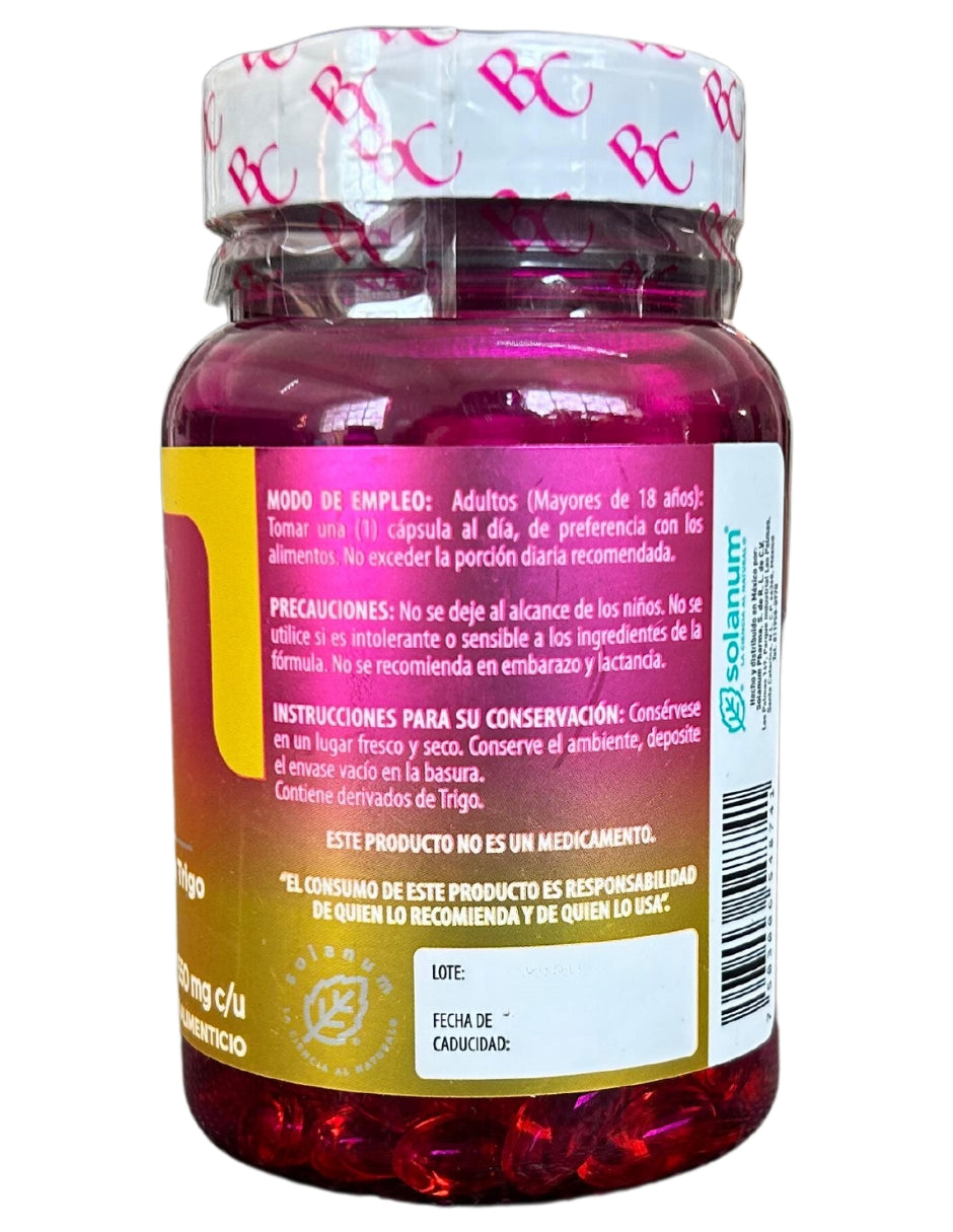 Belacaps by Solanum de Vitamina E. Presentación de 120 cápsulas que contienen Vitamina E, Biotina y Germen de Trigo. Cada cápsula es enriquecida con Biotina para mejorar la absorción y actividad de la vitamina, además de proporcionar antioxidantes para neutralizar los radicales libres. El germen de trigo añadido también contribuye al mantenimiento de un nivel saludable de energía. ¡Conoce todos los beneficios de esta combinación!