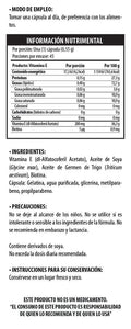 MODO DE EMPLEO: Tomar 1 (una) cápsula al día, de preferencia con los alimentos. No exceda la dosis diaria recomendada.